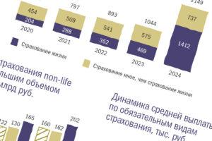 Наиболее емкими по объему выплат видами страхования, иного чем страхование жизни, являются ДМС, ОСАГО и каско. При этом динамика увеличения выплат по этим видам страхования в период 2022–2024 годах неравномерна. После замедления роста выплат в 2023 году в течение 2024 года произошло существенное увеличение страховых возмещений как в моторном, так и добровольном медицинском страховании.