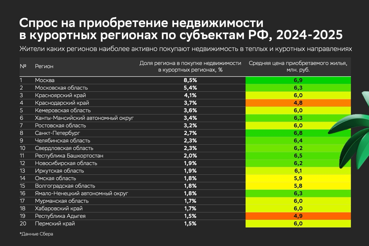 Межрегиональный спрос на покупку жилья в курортных регионах России, 2024-2025 гг.