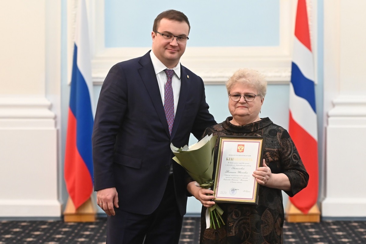 Губернатор Омской области вручил благодарность президента РФ сотруднице Росгосстраха Татьяне Баталовой