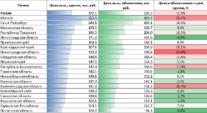 Стоимость квадратного метра в новостройках оказалась на 52,1% выше, чем на вторичном рынке, но такая разница объясняется главным образом низкой ценой старого жилья, построенного ещё в прошлом столетии. Если же рассматривать современное готовое жильё (возраст которого составляет менее 10 лет), то оно всего лишь на 12% дешевле новостроек.