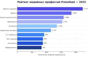 Каждый такой запрос — это черновик будущей новости. Поэтому статистика Pressfeed отражает реальную медиакартину: кого и зачем ищут журналисты, о чём они пишут и какие профессии звучат громче остальных.