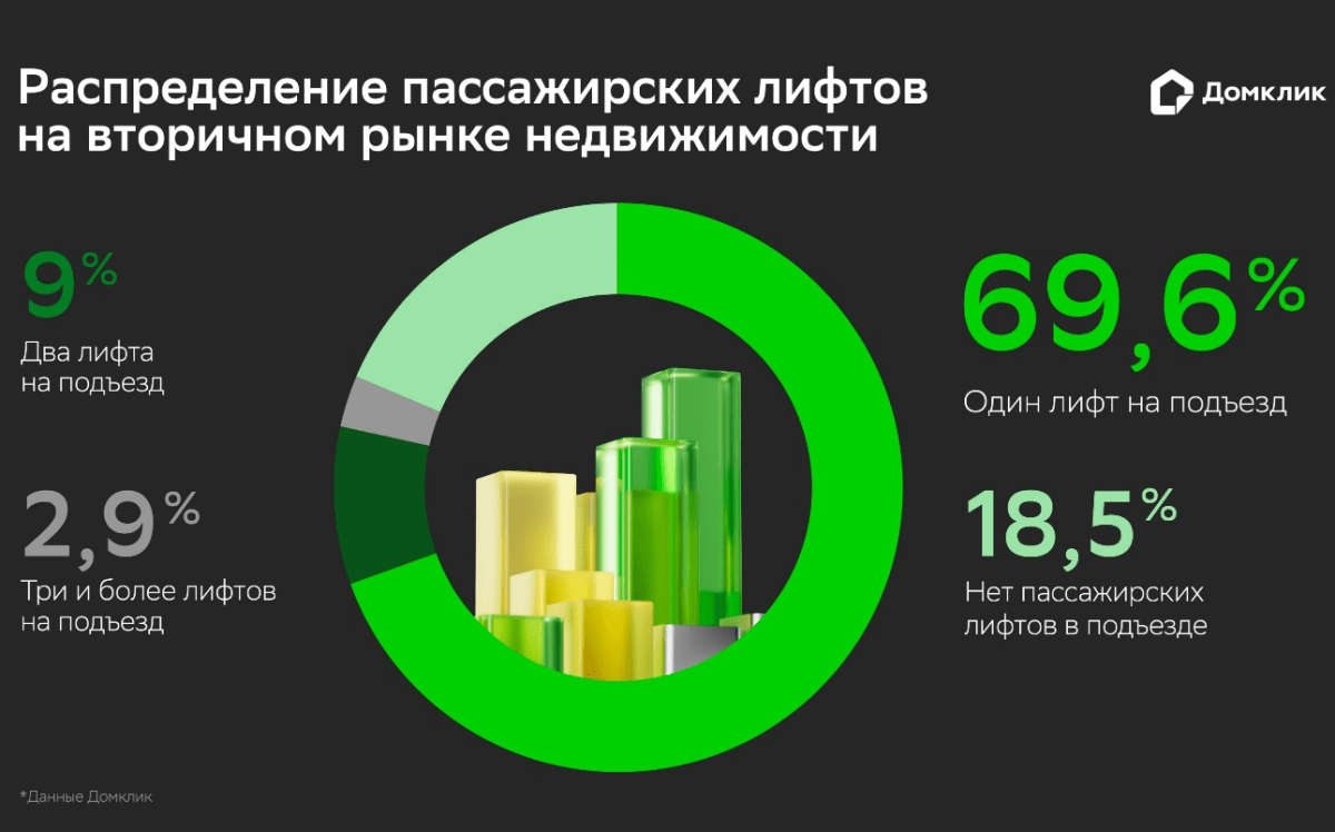 Квартиры в домах с лифтом на вторичном рынке в среднем на 47% дороже – исследование Домклик