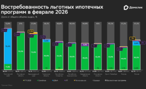 Спрос на Дальневосточную и Арктическую ипотеку (ДВиА), а также ИТ-ипотеку вырос как в отношении января 2026 года, так и год к году. Выдачи ДВиА в феврале составили 18,4 млрд руб. Это на 56% выше января 2026 и в 2,2 раза – февраля 2025 года.