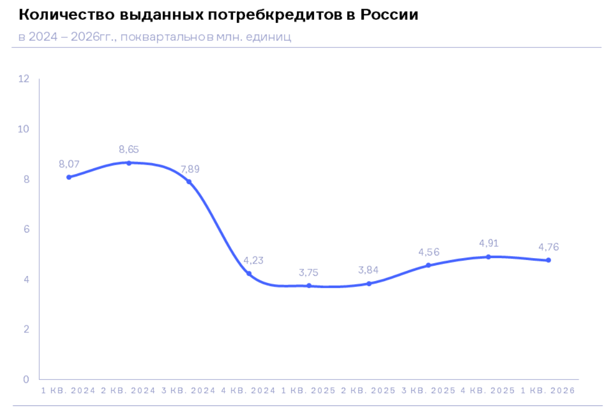 НБКИ: в 1 квартале 2026 года было выдано 4,76 млн. потребительских кредитов