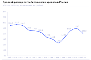 «После трех месяцев восстановительного роста, в мае динамика среднего размера потребительского кредита вернулась к снижению, — констатирует директор по маркетингу НБКИ Алексей Волков. – Напомним, что до февраля 2025 года средний чек потребкредита падал семь месяцев подряд. Во многом такая динамика являлась следствием жесткой денежно-кредитной политики регулятора по охлаждению кредитного рынка, включая макропруденциальные ограничения, в том числе в отношении показателя долговой нагрузки (ПДН)».