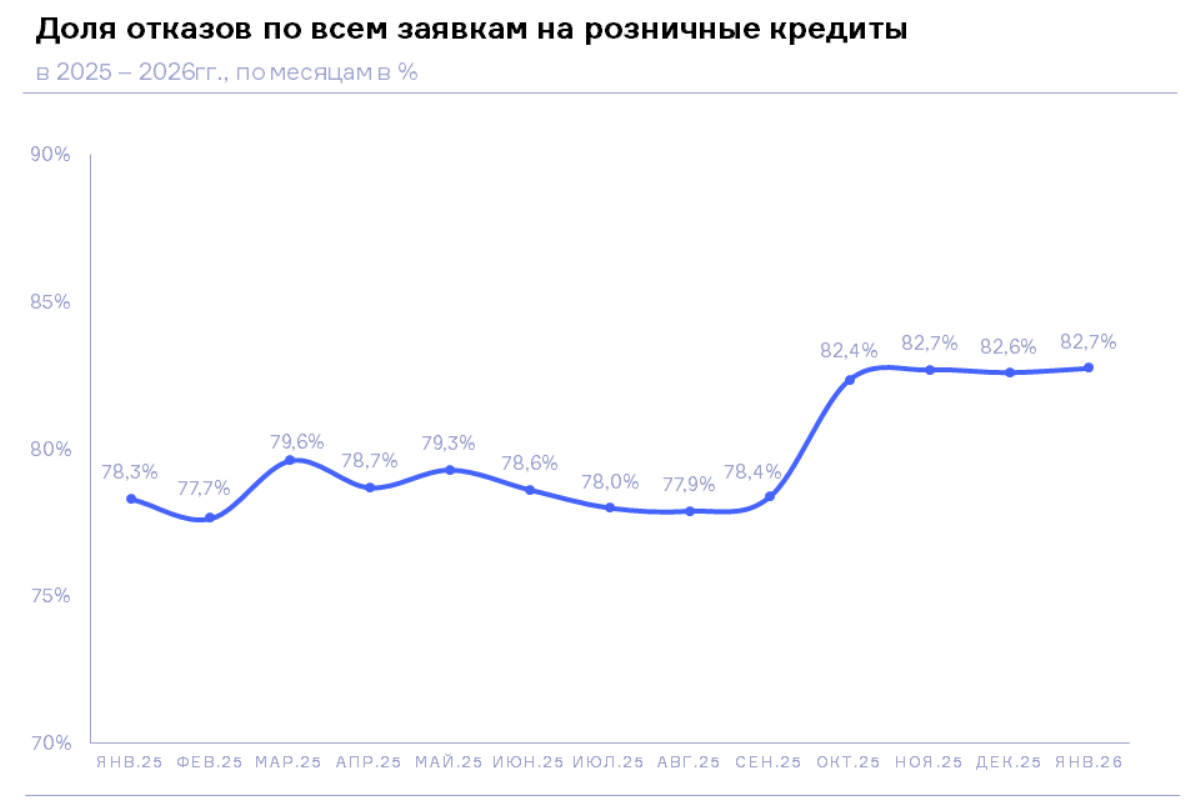 НБКИ: в начале 2026 года доля отказов по всем заявкам на розничные кредиты составила 82,7%