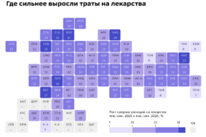 Максимальные траты на эту категорию товаров отмечены у людей старше 50 лет: средний чек — 900 рублей за покупку (+11% за год), а ежемесячные расходы — 2900 рублей (+11,5%). У людей моложе 20 лет средний чек в 2025 году составил 500 рублей (+11,8%). При этом в среднем молодёжь тратит на лекарства 1200 рублей в месяц (+11,5%).