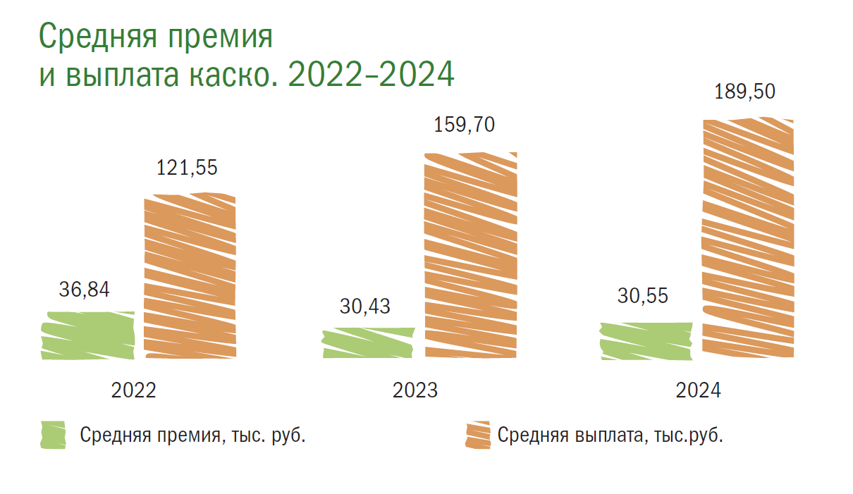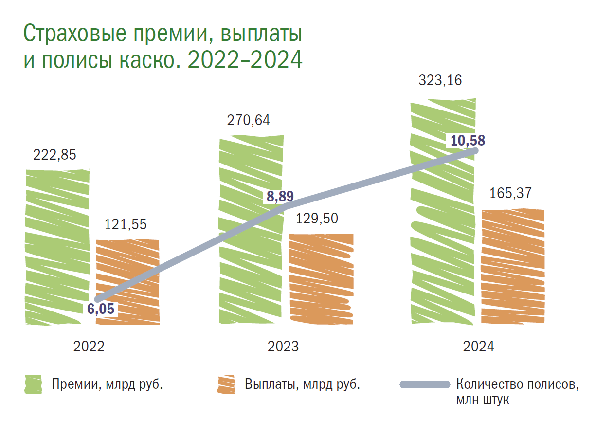 При этом в 2023 и 2024 годах каско является одним из драйверов развития страхового рынка по динамике прироста страховых премий и количества реализованных полисов.