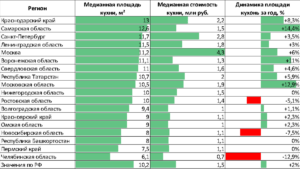 Дополнительно аналитики определили медианную стоимость квадратного метра жилья в каждом регионе и посчитали примерную стоимость кухонь (произведение медианной площади кухни и медианной стоимости квадратного метра).